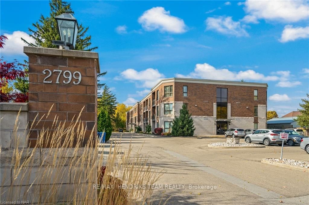 In the desirable North End of Niagara Falls is a beautifully custom-designed main floor condo. This unit is the only one that directly faces the forest as well as the walking trail from the main floor. This unit was designed and laid out by the current homeowners. Upon entering the unit, you will be greeted with an open-concept living space, with the high-end (Artcraft kitchen) catching your eye right away. The kitchen is finished in high-quality materials with quartz countertops featuring an attractive waterfall accent. The kitchen is additionally finished with tiled floors, a tiled backsplash, and an abundance of lighting. Down the hall, you will find the oversized primary bedroom with a panoramic view of the walking trail and gardens. The windows have also been finished with new California shutters. This primary bedroom includes a 4-piece ensuite and two double closets. The second bedroom (currently being used as a TV/reading room with a pull-out couch) also has a wall-to-wall closet recently installed by Closets by Design. To complete this unit, there is a second 3-piece bathroom and a separate in-suite laundry room. The back patio door, located off the living room, leads directly to the wooded area with walking paths and parks. Your parking spot is also located directly outside this door, which offers amazing convenience, avoiding the need to go through the entire building to access your unit. Condos of this stature don't come to market very often. Make this your new home today!
